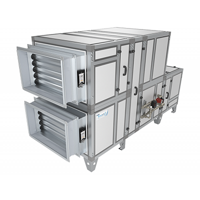 - Приточно-вытяжная установка напольного типа с противоточным пластинчатым рекуператором, системой защиты от замерзания, эффективный рабочий температурный диапазон до -35°С.